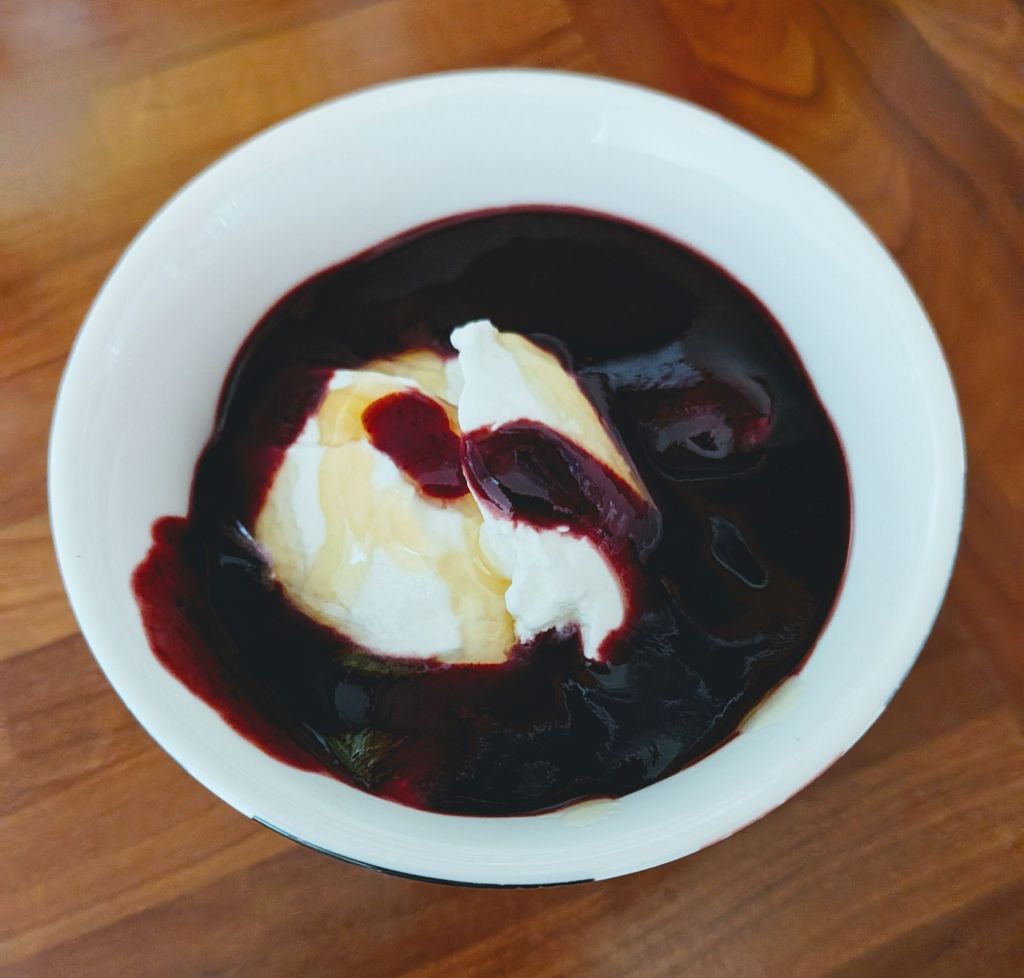 The yogurt was tangy, the honey added that floral sweetness, and the blueberry sauce gave it a rich, jammy depth. Honestly? It might have been even better than my original idea.